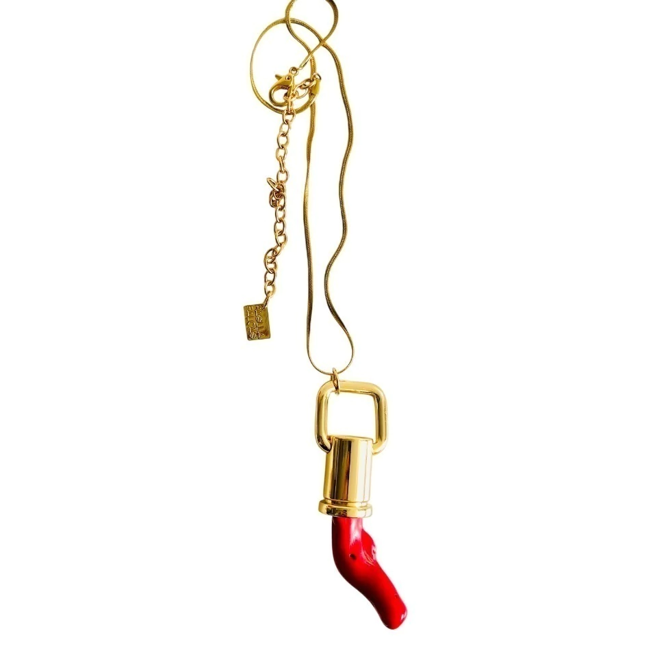Corrente em aço inoxidável com pingente em coral bambu vermelho.